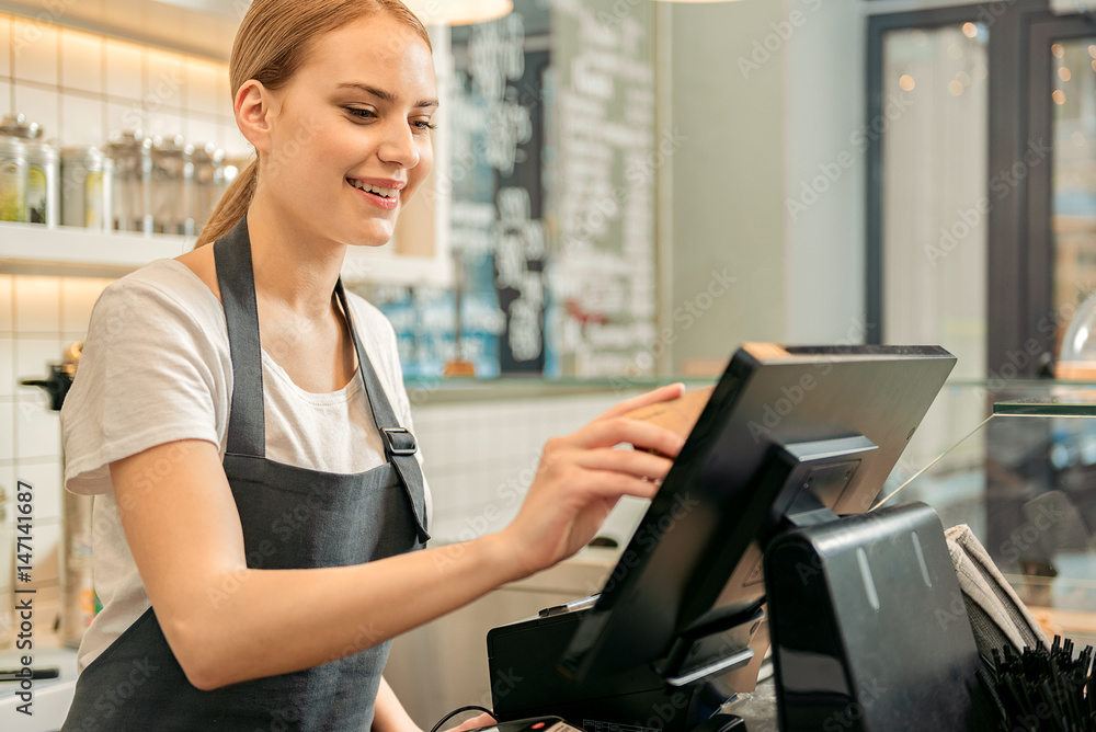 This is a cashier. She is working at a store. She is a worker at a store. If she works at Target, Target is the employer. If she works at Walmart, Walmart is the employer. The cashiers at stores like Walmart, Target, Aldi, Cub Foods, Aldi, and Walgreens, are employees. An employee is the person or the worker. The employer is the store, company, restaurant, or business.This is a construction worker. The construction worker is wearing PPE, personal and protective equipment. He is wearing gloves. He is wearing a red reflective vest. He is wearing a helmet on his head. He works outside and it looks like it is hot outside. He is wearing sunglasses to protect his eyes from the sun as he works.
